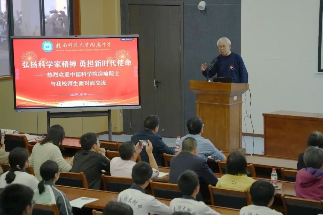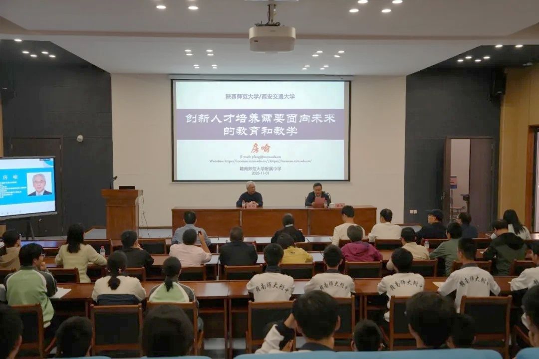 2025年11月1日下午,房喻院士应邀来到赣南师范大学附属中学(蓉江校区)参加以“我与院士面对面”为主题的交流活动,并作题为“创新人才培养需要面向未来的教育和教学”的报告。