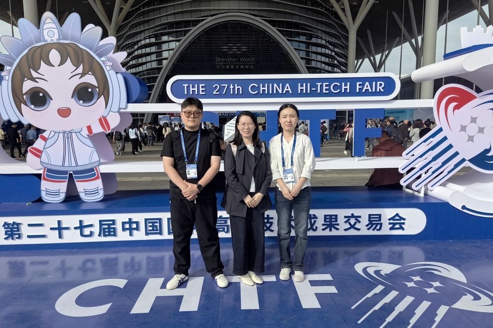 2025年11月14日至16日,陕西师范大学新概念传感器与分子材料研究院研发工程师王佩、罗艳彦、田哲赴深圳参加了第二十七届中国国际高新技术成果交易会(高交会),展示了STCPS防水透气拒油膜材料及其产业化进展。