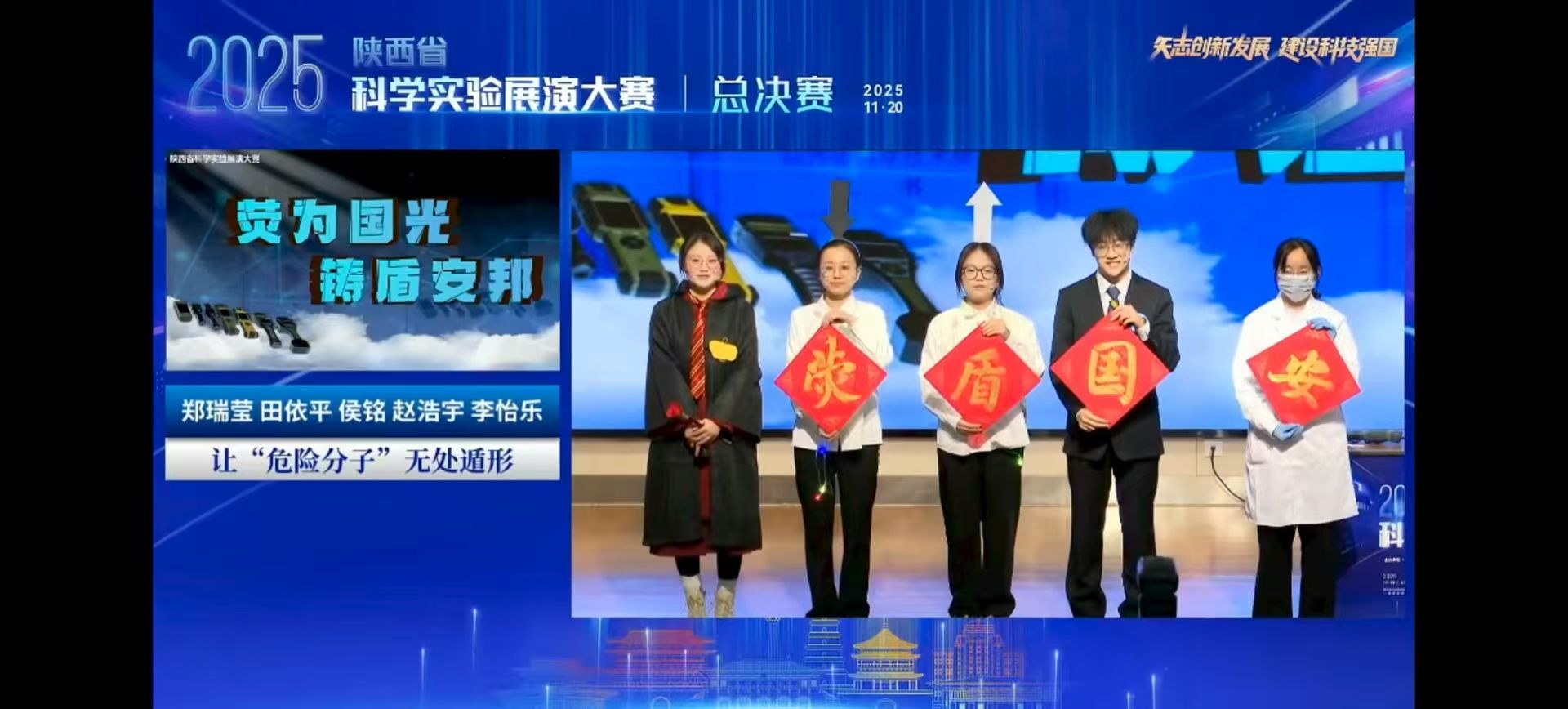 2025年11月20日,陕西师范大学化学化工学院本科生团队凭借“让‘危险分子’无处遁形”项目获得2025陕西省科学实验展演大赛一等奖。