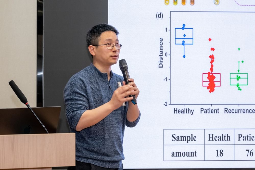 吴巍炜教授从电子鼻工作原理、电子鼻呼气诊断研究的方法学出发,介绍了课题组针对电子鼻人工嗅觉受体瓶颈,在导电聚合物VOCs传感器阵列、传感器湿度干扰压制办法、聚合物复合薄膜无源VOCs传感器阵列,以及临床尿液气味检测膀胱癌等方面开展的前期工作和电子鼻系统设计与制造方面工作。