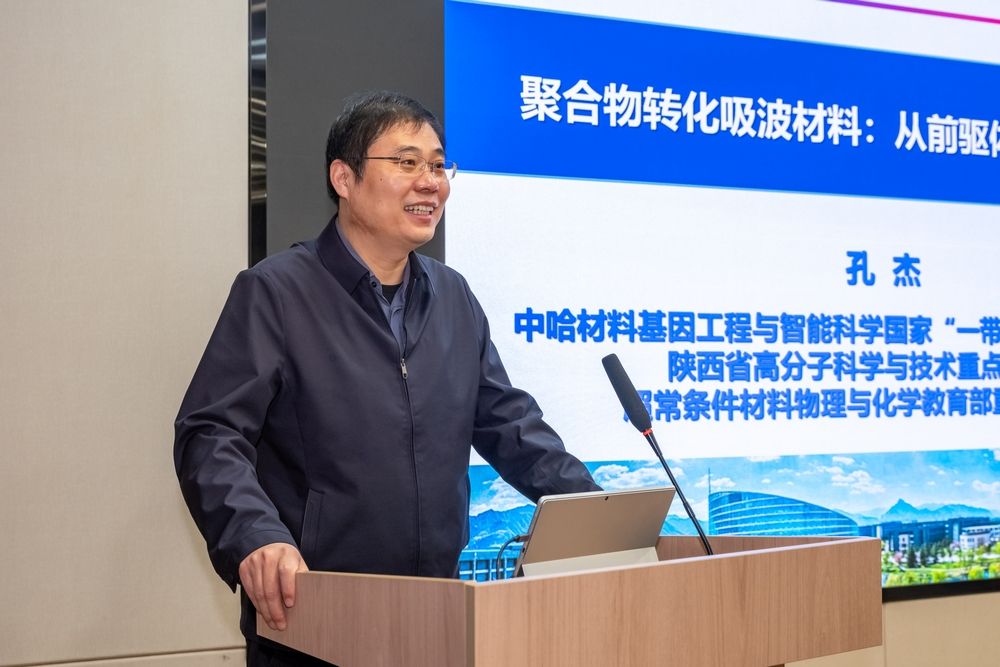 孔杰教授介绍了聚合物转化吸波材料的最新研究成果,包括材料的设计、合成及其在电磁波吸收领域的应用,强调了超构材料在现代科技中的重要性,并分享了其团队在该领域的最新进展和未来研究方向。