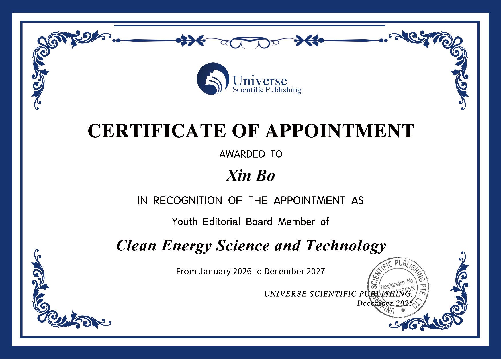 近日,陕西师范大学新概念传感器与分子材料研究院薄鑫副研究员被《清洁能源科学与技术》期刊聘任为青年编委,聘期为2026年1月至2027年12月。
