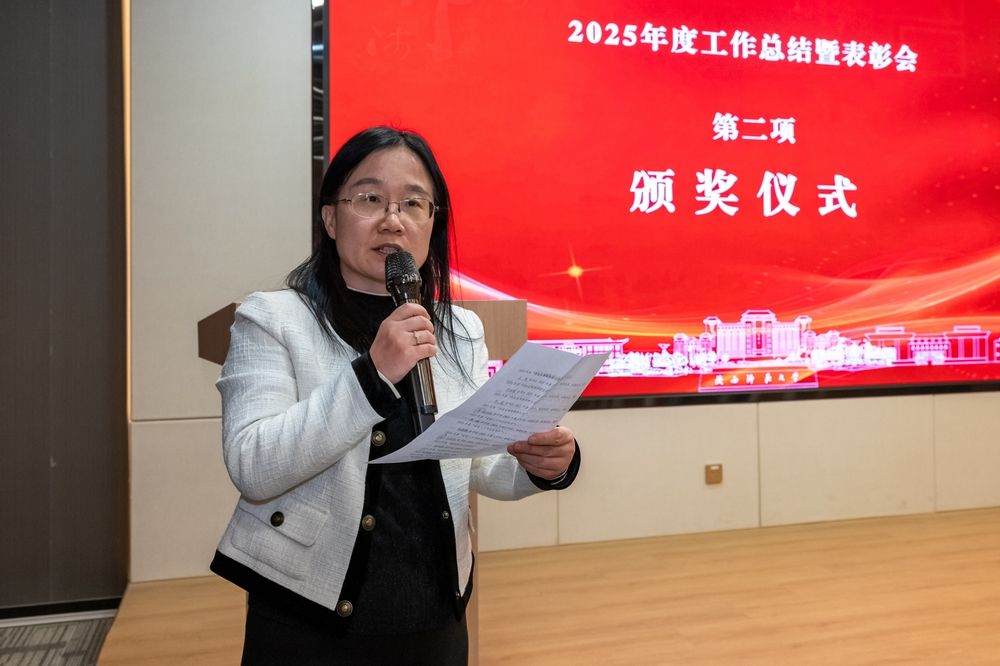 随后,丁立平副院长宣读了2025年度表彰名单,薛东旭、苗荣、刘忠山获“标志性论文奖”,罗艳彦、刘小燕获“人才培养突出贡献奖”,彭浩南、边红涛、苗荣获“教学突出贡献奖”,杨小刚、彭军霞、王佩、何怡楠、毕超获“科技成果转移转化奖”,刘太宏、薄鑫、赵智豪获“省级人才项目获得奖”,刘凯强获“对外合作突出贡献奖”,丁立平、刘太宏获“国家级项目获得奖”。房喻院士为获奖老师颁发荣誉证书并与获奖者合影留念。