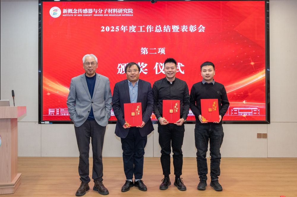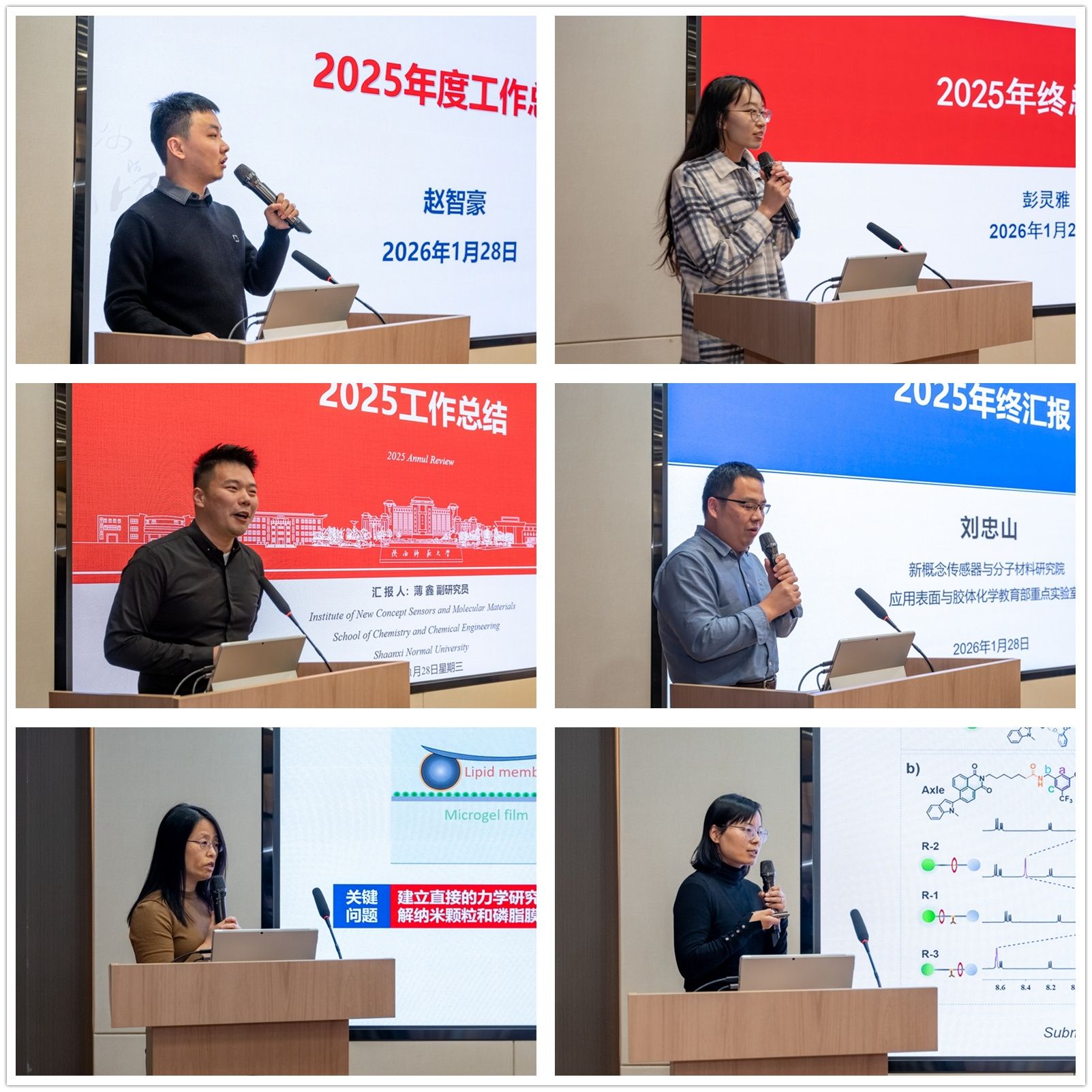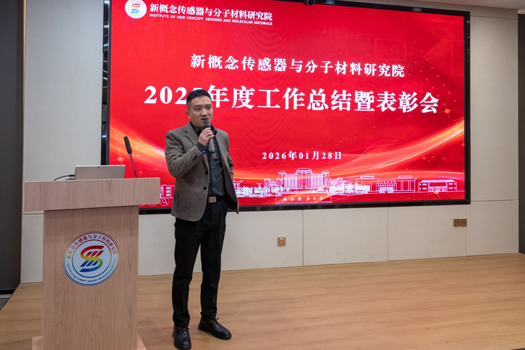 2026年1月28日下午,陕西师范大学新概念传感器与分子材料研究院在报告厅举行2025年度总结暨表彰会,研究院科研团队教师、专职科研人员、行政人员及博士后30余人参加表彰会,物理学与信息技术学院辛云宏教授、人工智能与计算机学院马苗教授、国际商学院毕超副教授出席会议。会议由副院长杨小刚主持。
