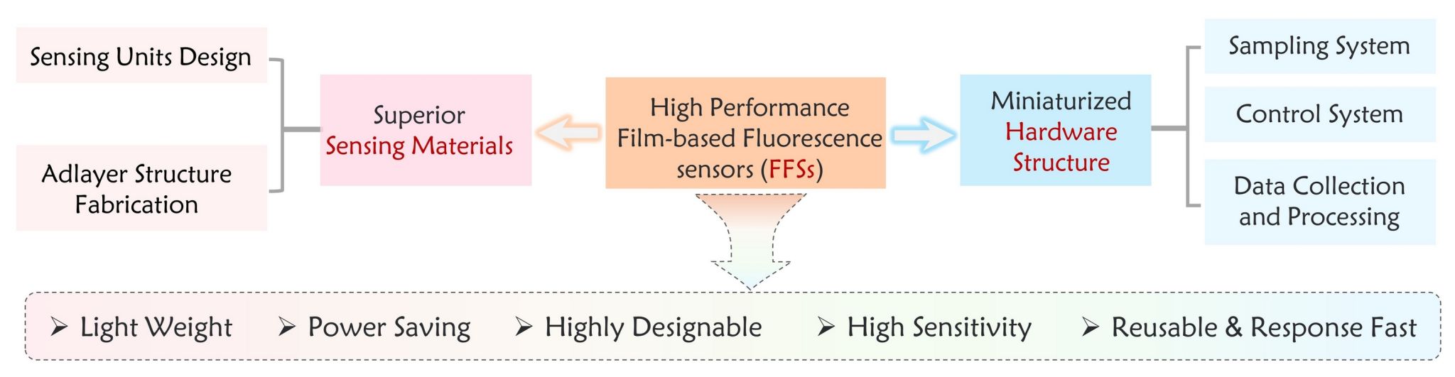 在应用层面,文章详细梳理了FFSs在多类目标物检测中的代表性成果,包括毒品、化学战剂、VOCs、食品化学残留以及温度、湿度、紫外光和压力等物理刺激。通过合理的分子设计与薄膜结构工程,多个体系已实现ppb甚至更低检测限,同时具备秒级响应和良好循环稳定性。最后提出结合分子工程、器件集成与数据驱动方法将是推动FFSs实际应用与智能化发展的核心路径。