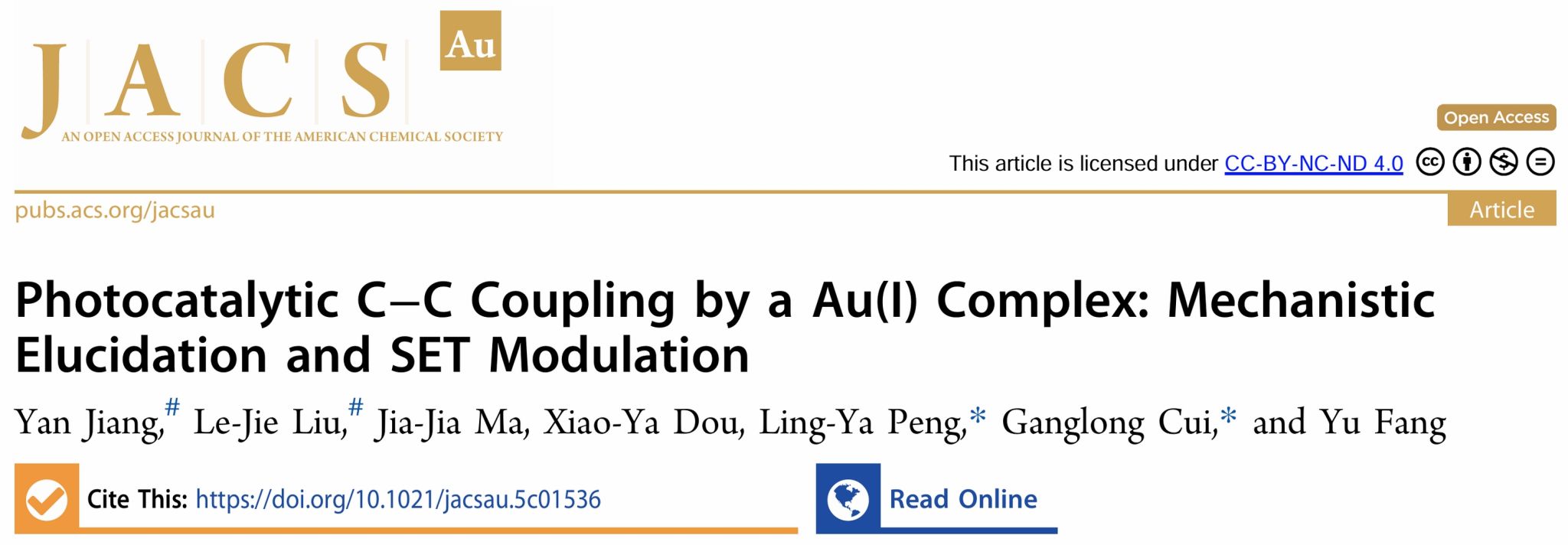 Yan Jiang#, Le-Jie Liu#, Jia-Jia Ma, Xiao-Ya Dou, Ling-Ya Peng*, Ganglong Cui*, and Yu Fang. JACS Au. 2026, DOI: 10.1021/jacsau.5c01536