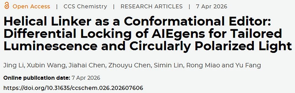 Jing Li#, Xubin Wang#, Jiahai Chen, Zhouyu Chen, Simin Lin, Rong Miao* and Yu Fang*. CCS Chem. 2026, DOI: 10.31635/ccschem.026.202607606